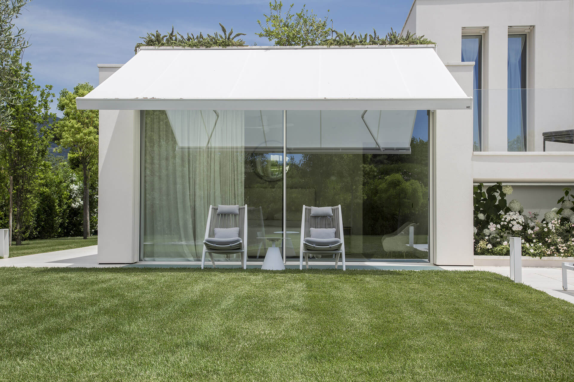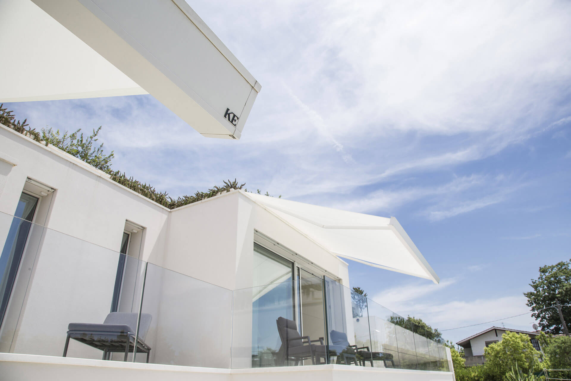 Aperta una tenda da sole, da chiusa un esclusivo oggetto di design. Lo sviluppo orizzontale di Qubica FLAT la rende una copertura di design, integrandosi perfettamente ed esaltando i contesti architettonici contemporanei. Tenda a bracci con cassonetto con optional kit strip led.