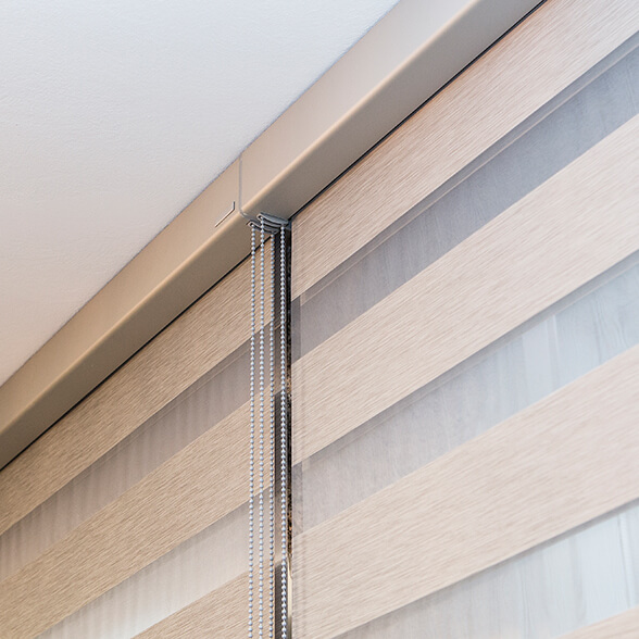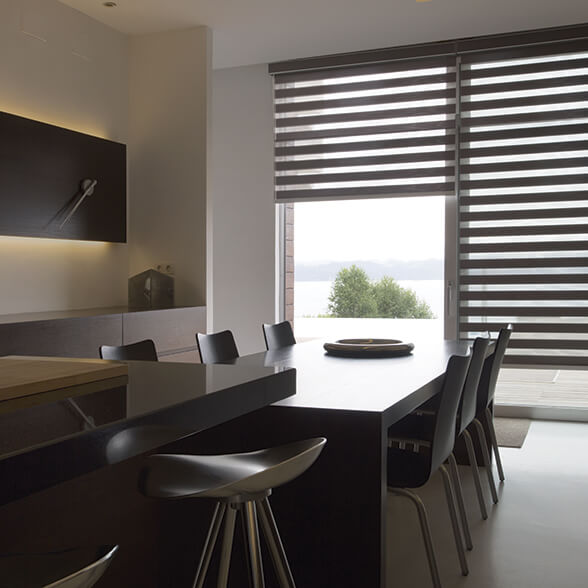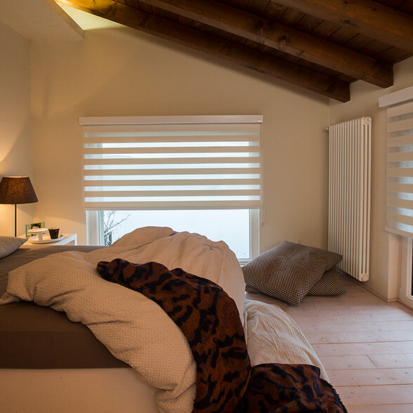 Una tenda con doppia funzionalità , che consente di godere di maggiore luminosità o intimità , a seconda delle tue emozioni. Il tessuto Giorno e Notte è composto da fasce orizzontali che alternano tessuto trasparente e semi-opaco e si sovrappongono quando vengono azionate. Il loro grande impatto visivo dona al tuo spazio una personalità elegante e contemporanea.