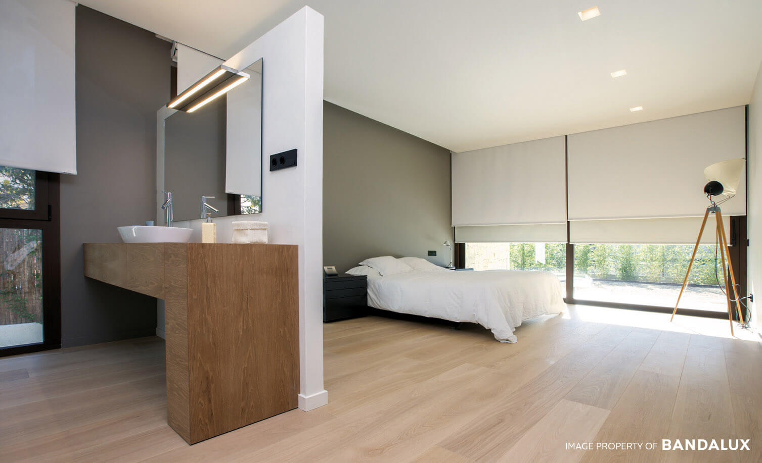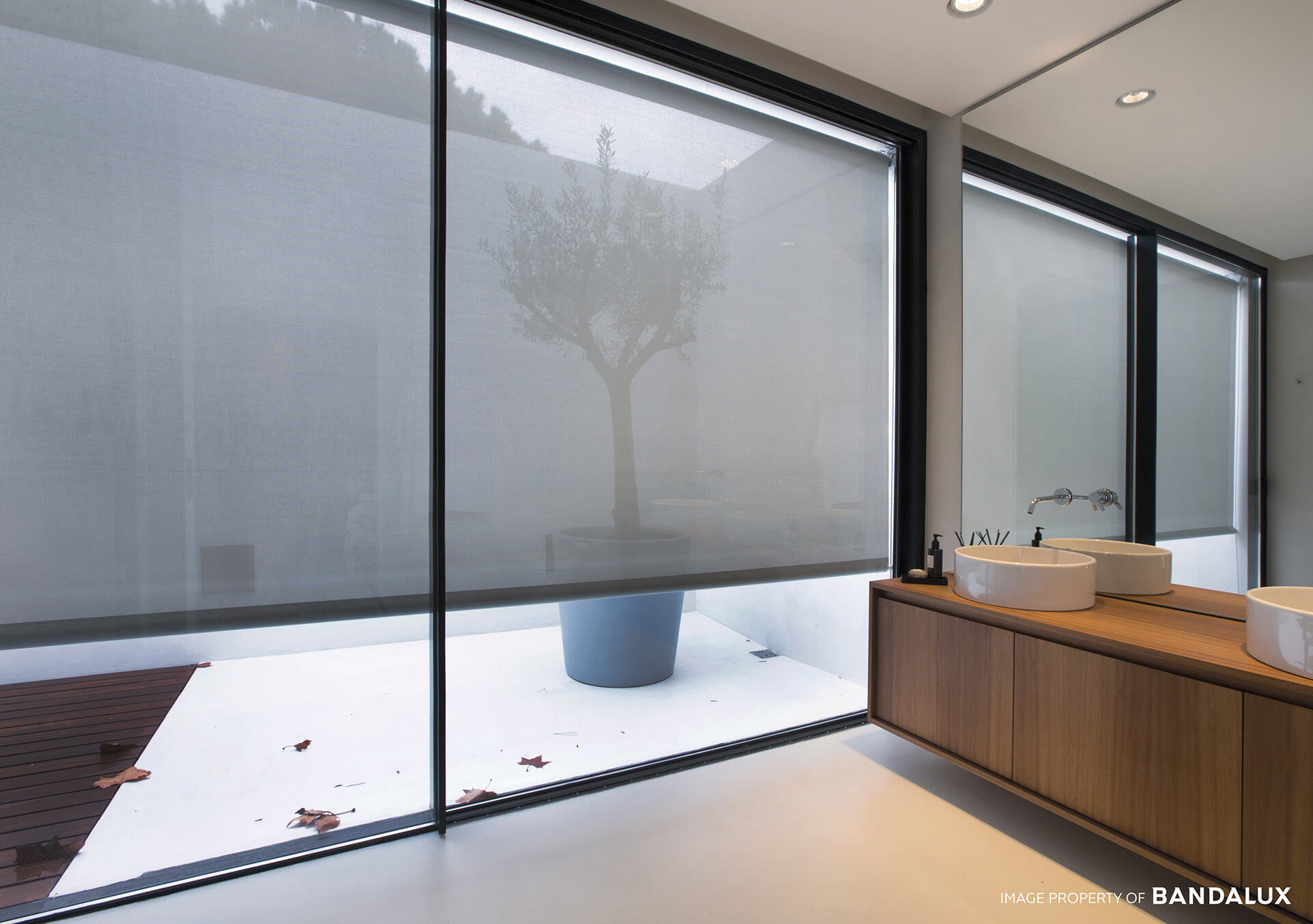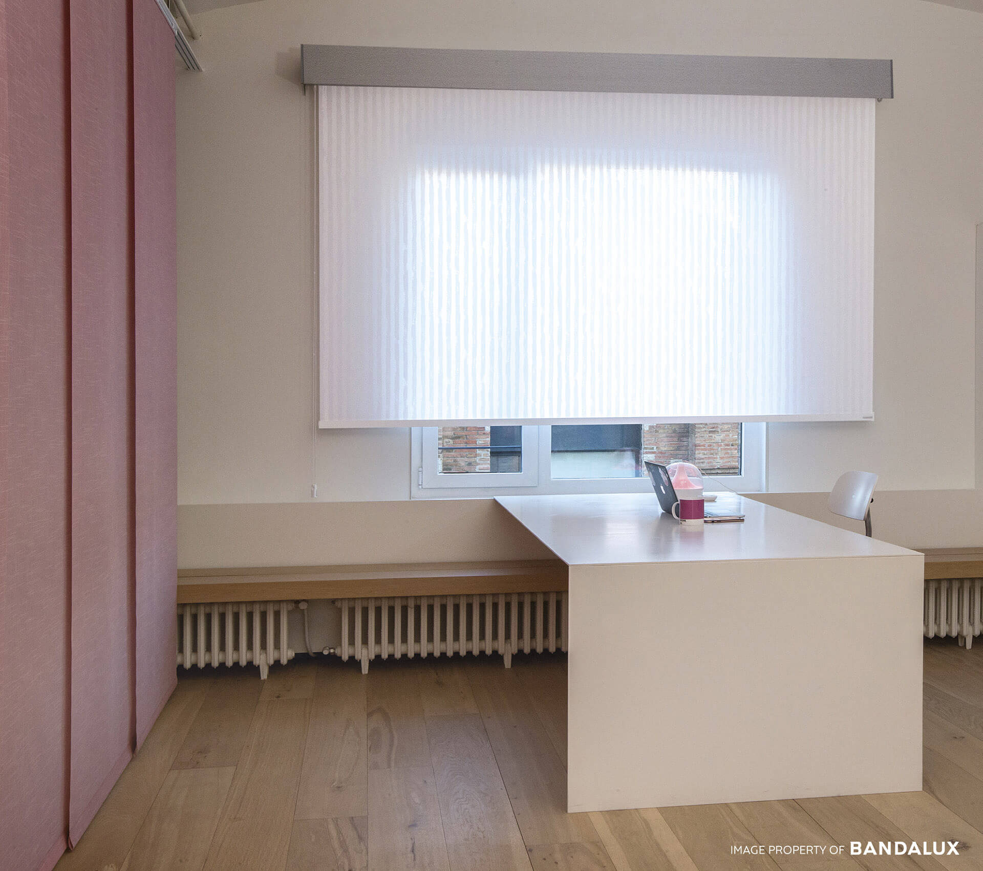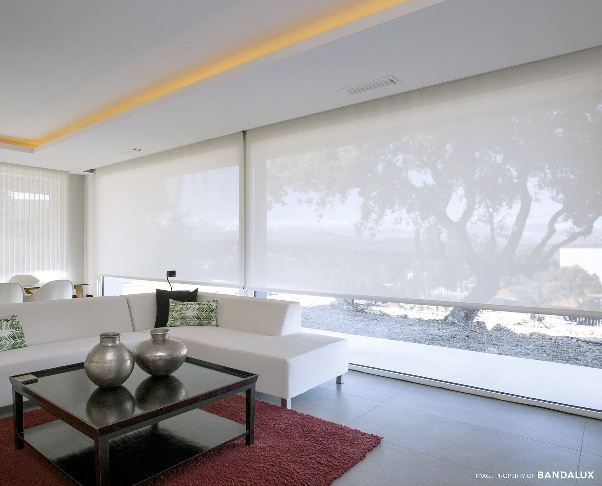 Le tende a rullo permettono di combinare un tessuto decorativo e uno tecnico nello stesso sistema, per poter regolare la luce della stanza in qualsiasi momento, passando da un ambiente con luce schermata a uno con completa opacità .